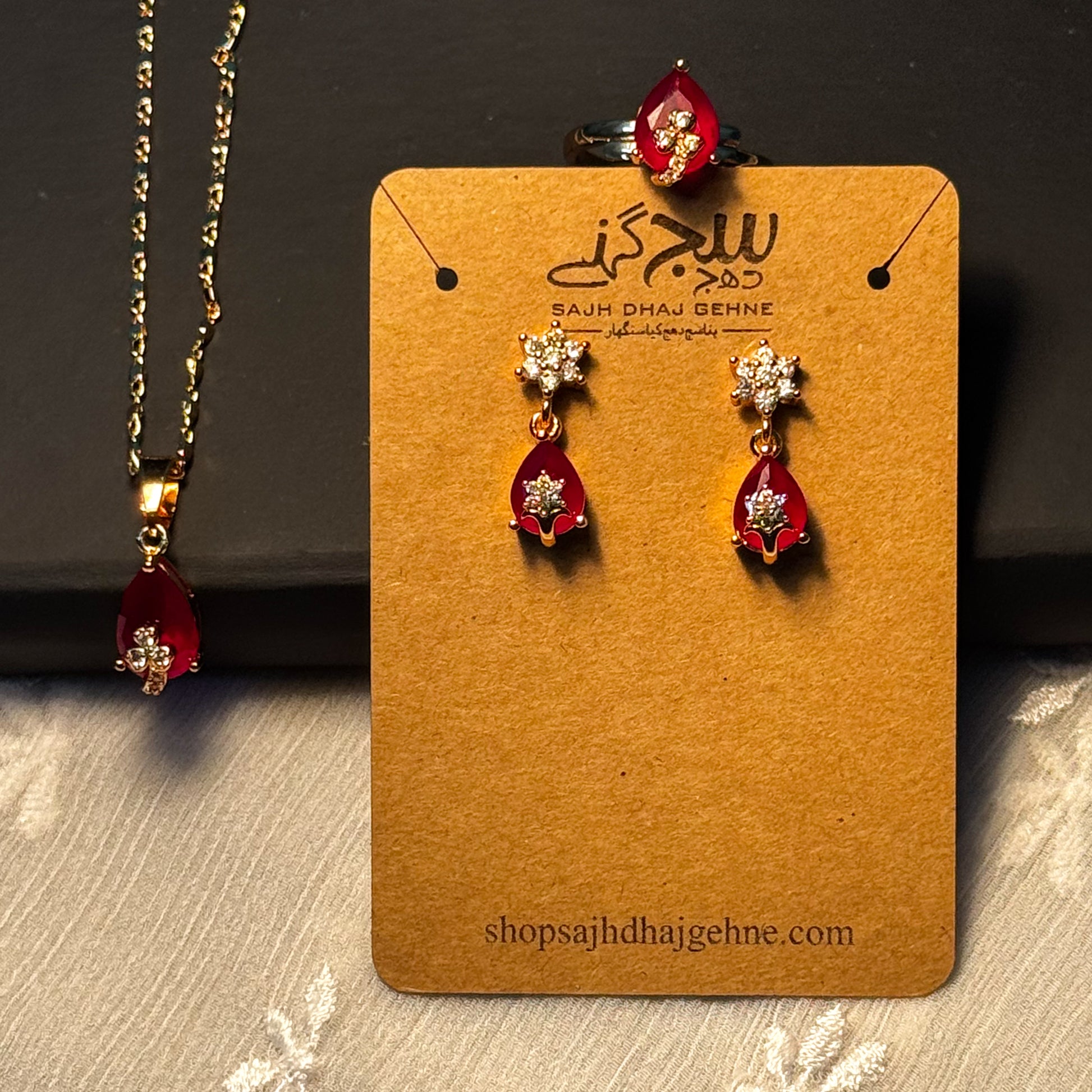 Dazzle in deep ruby hues and sparkling crystals with this captivating necklace and earring set. A bold blend of passion and elegance, perfect for making unforgettable impressions.
